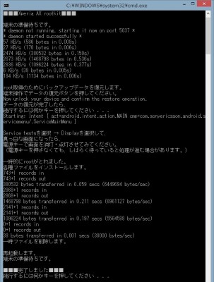 またあの面倒な作業をするのも面倒なんで・・・今回は rootkit を使わせていただきました。これ、DOS 窓からバッチ実行するだけで root 取れますの(実際は少し端末の操作が必要)。こりゃ簡単ですの。
