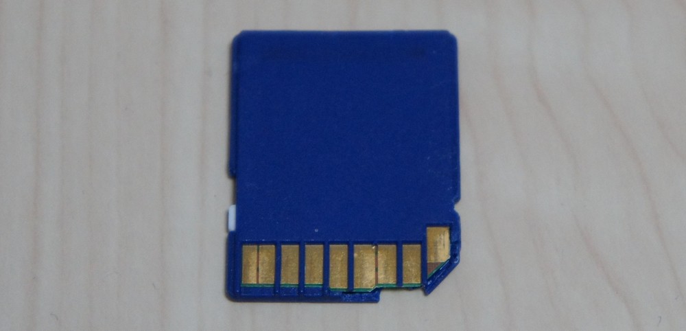 なんか、SD カードの装着時にうまく止まってくれない・・・と思ってみたら、カードのガワが割れておりました。