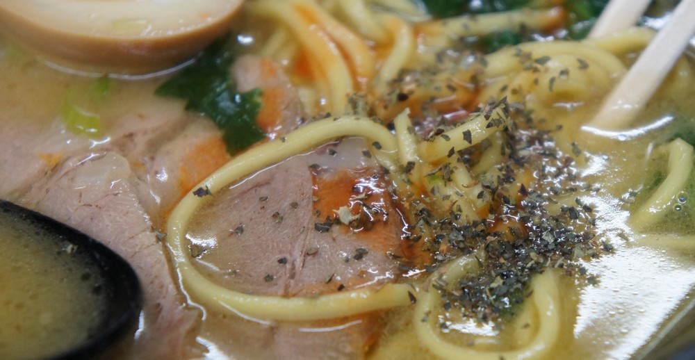 まずは和風とんこつ特濃プレミアム。初回に食べたプレミアムの上を行く、特濃タイプです。クーポンで味玉を付けてもらいました。
