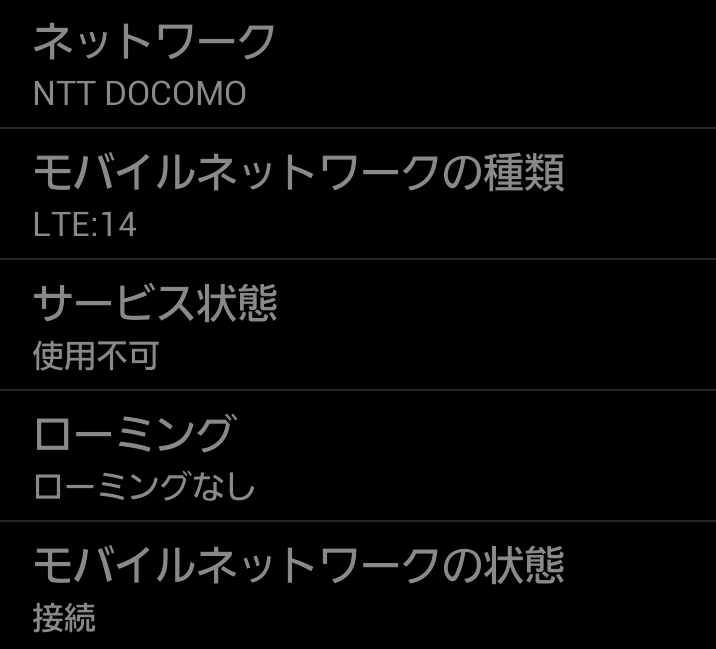 無事に LTE で繋がりました。SMS オプションを付けていないので、サービス状態は NG になっています。