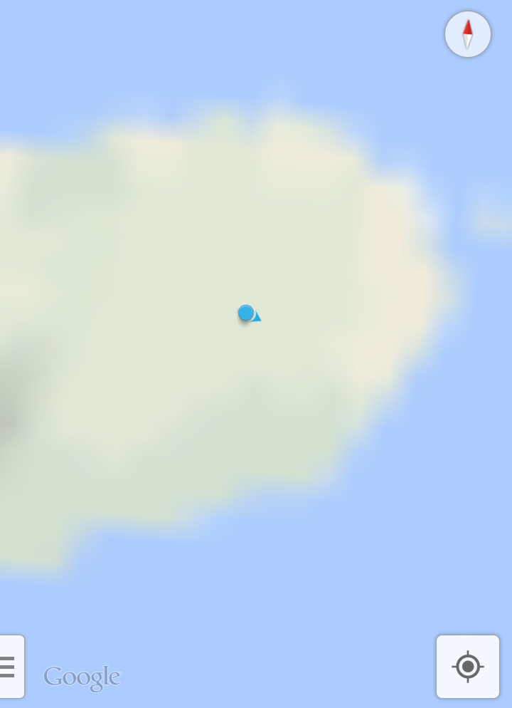 変なところ走られたらヤダな・・・ということで、ぐぐるマップ片手に GPS で現在位置をトレース・・・していたつもりなんですが、事前に地図をキャッシュし忘れていたことと、今回はレンタル WiFi やプリペイド SIM は用意しなかったので、地図がボケボケ orz