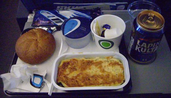 搭乗後は割と立派な機内食が出ました。ほうれん草のラザニアにパン。ビールも頂いたら意外にもお腹いっぱい。