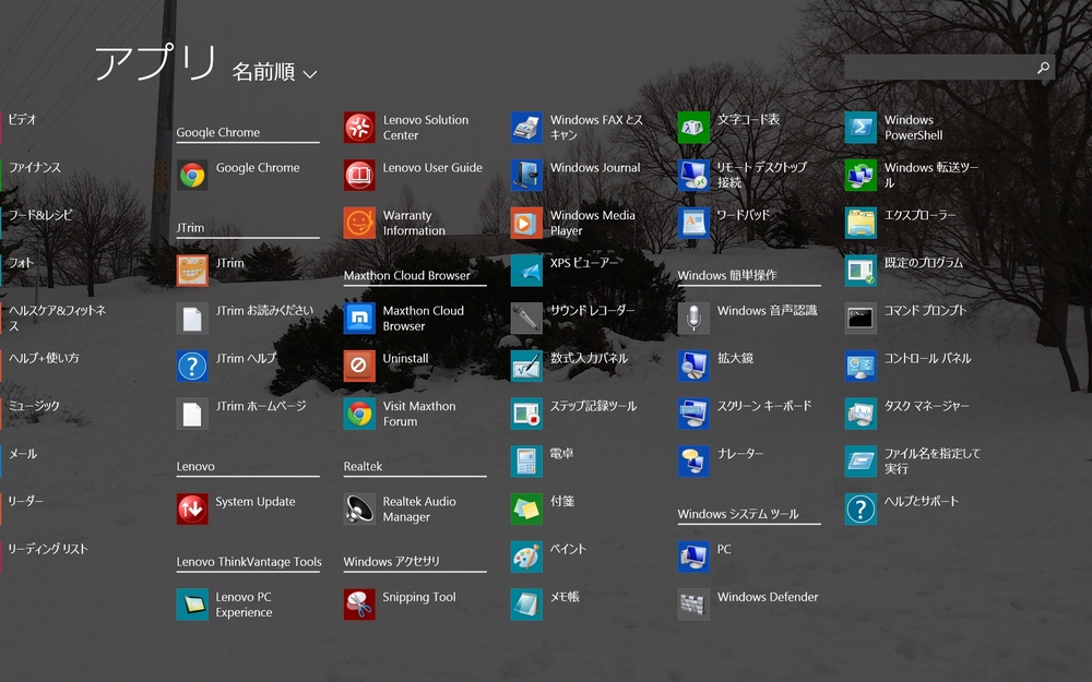 その他のアプリも Lenovo 関連のものが結構入ってます。ストレージは 64GB と最低限なので、不要なものは消したいところ。