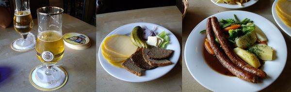 その後近所のレストラン・・・カナ?飲み屋かな?で夕食。つまみにポメスとオランダチーズ盛り合わせ、ドイツソーセージのプレートを頂きました。デュッセルにしては珍しくケルンなお店だったようで、ビール頼んだらピルスナーが出てきました。