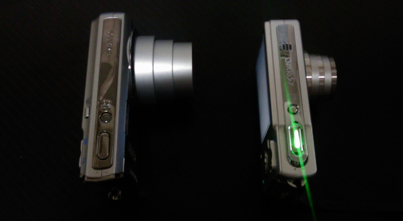 厚みは M60 の方がちょっとありますが、微量かな。光学5倍なので、レンズの出っ張りは M60 の方が多いです。S7 はシャッターボタンが光ります・・・