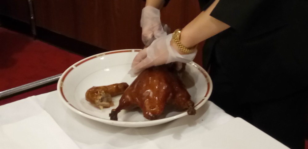 やっぱりオーダーしてしまった北京ダック。7人なので1羽です。
