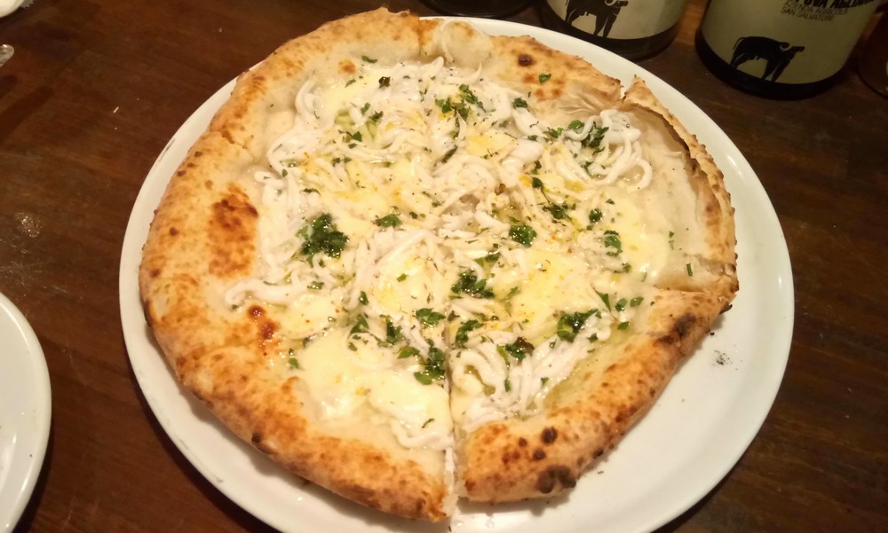 2枚目はチーズベース。プロパーメニューじゃない白魚の乗ったもの。