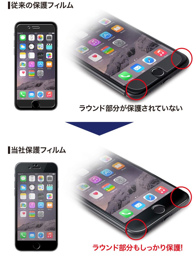 色が塗られていない部分が液晶表示部よりも狭くて、画面が全部表示されないってのもなんだけど、一番のウリにしていたラウンド部分の保護が全くできない・・・
