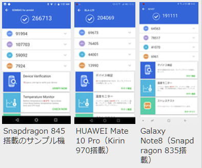 以前リークでは情報出ていましたが、最近はメディア向けイベントなんかでベンチマーク結果も公開されるようになったスナドラ845。