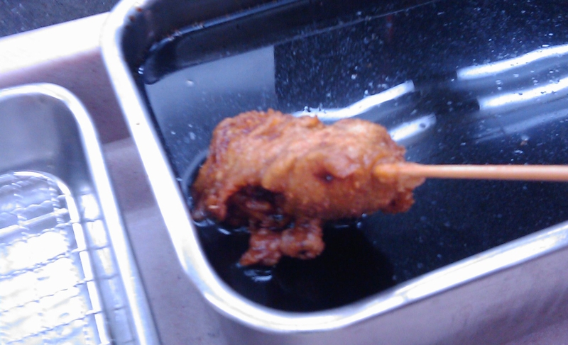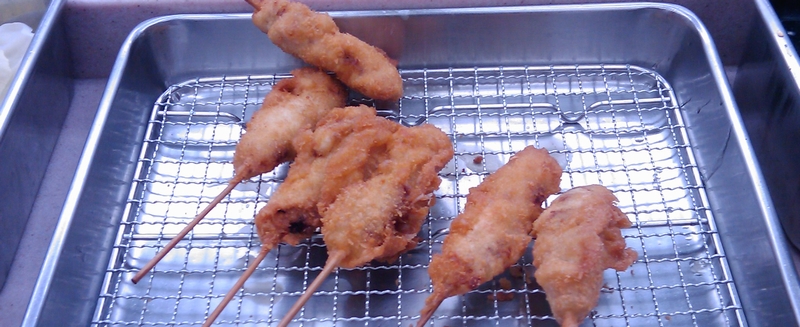 さて、ちょっと並んだだけで入ることができたお目当ての串かつ屋、大阪 新世界 じゃんじゃん横丁の八重勝。T氏が大阪一と言うこのお店、行列やお客さんの回転を見ても他のお店とは違うのは一目瞭然。