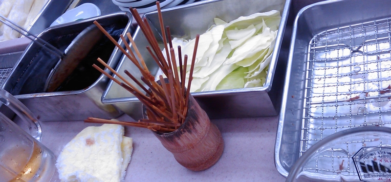 キャベツは食べ放題。これも良い串休め(?)になってウマイ。