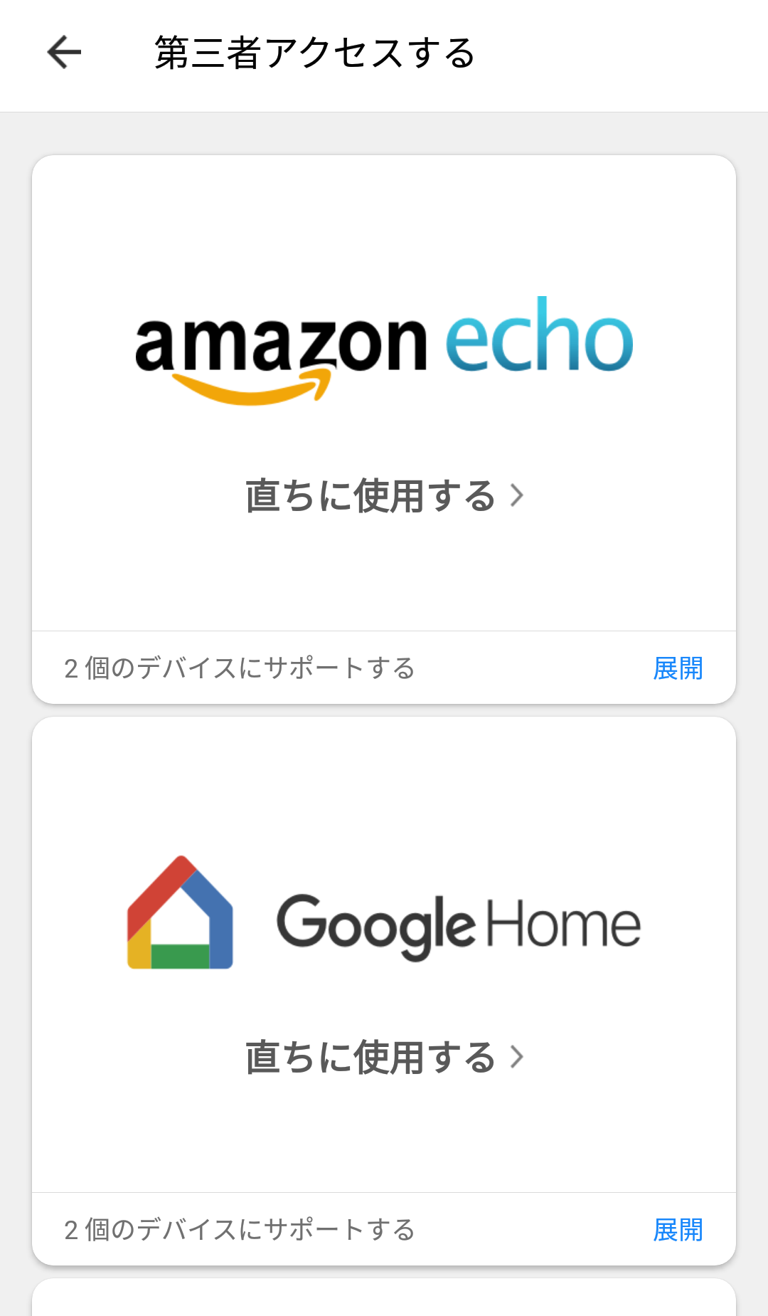 アプリの設定を見てたら、Google Home の接続っぽいメニューを発見・・・したけど、登録方法が記載されているだけでした。