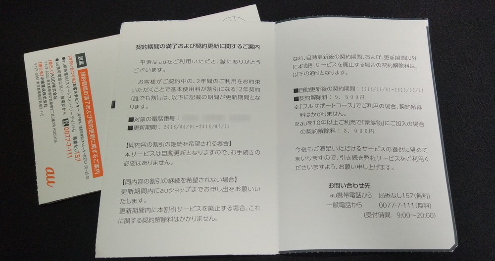 Posted in Gadgets, ひとりごと まだ残っていた au 回線 Author: 管理人 Published Date: 2018/06/10 Leave a Comment on まだ残っていた au 回線 4月の解約で、すべての au 回線は解約したつもりでいたのですが・・・ まだ2回線残っているよ、と au からお知らせがきました。 スッカリ忘れていましたが、2年前の5月末にゲットした iPhone 6 (64GB) 2台の回線が残っていたのです。 回線は持ち込み機種変で音声回線のみにしてあるし、端末も売却済。 この週末に au ショップに行って解約してきました♪ Author: 管理人