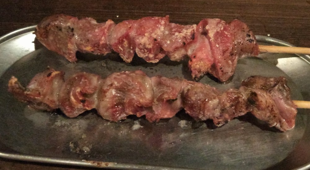 砂肝はちょっとこぶり。でも炭火焼きなのでウマイ。アツアツのうちが良いですな。