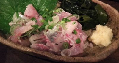 焼き鳥屋なのに、なぜかアジのたたきとかありまして・・・頼んでしまいました。