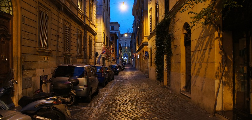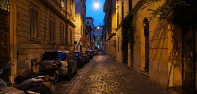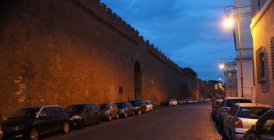 夜のサンピエトロ広場に向かう Conciliazione 通り。ライトアップされたサンピエトロ寺院も荘厳で美しいです。