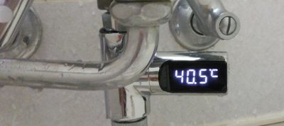 温水を流すとこんな感じ。温水器の設定温度が41度の状態で、40.0~40.5を示しています。結構リアルタイムで正確な表示。
