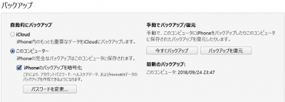 「このコンピューター」にして、「iPhoneのバックアップを暗号化」することで、各種設定もバックアップできます。