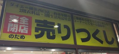 Posted in ひとりごと 完全閉店だそうな Author: 管理人 Published Date: 2018/10/13 Leave a Comment on 完全閉店だそうな 9月末に横浜西口にあるダイエーが終了するってニュースがありました。 なかなか確認できなかったのですが、ようやく確認しに行けました。 どうやら年末年始くらいまでは営業するらしい。 上にある住宅(URだったらしい)も、ほとんど人の気配はないですね。1部屋くらい灯があったような。 大震災の時は、結構周囲が破壊されていて、見に行った覚えが。 隣にあったビルも建て替わったし、近くのハンズも無くなりましたし。 ぜんぶ建て替えるんでしょうね・・・レコファンが入っていたので、時折使っていただけに残念です。 Author: 管理人
