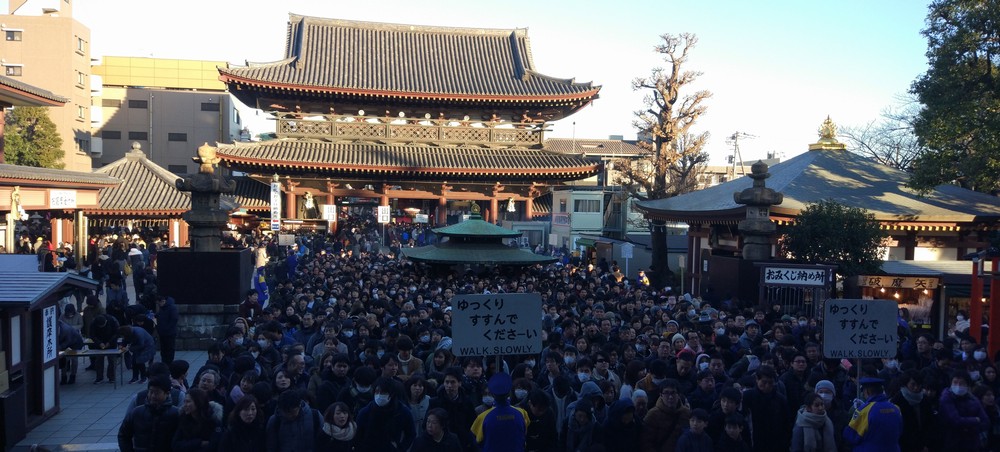 1段目の入場制限を突破。後は本殿の前の規制を超えればお参り可能。