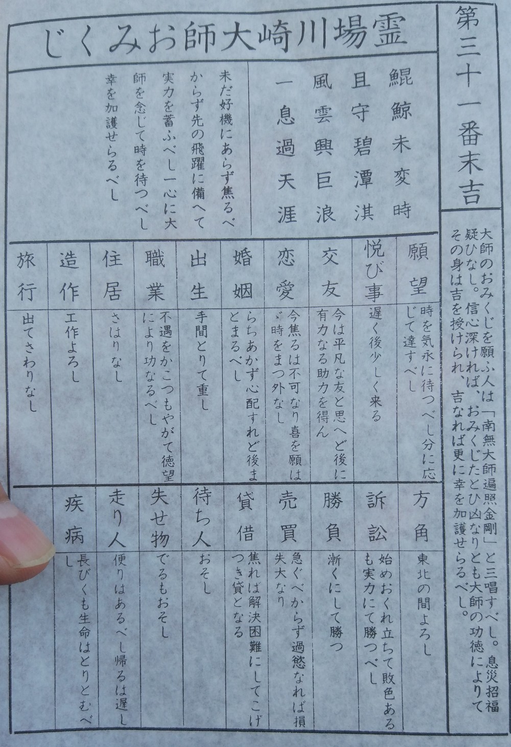 今年の運勢。末吉なので、あまりよろしくない。焦らず忍耐が必要とのこと。