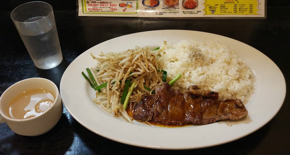 Posted in Foods, ひとりごと スタミナビフテキ焼メシ Author: 管理人 Published Date: 2019/05/19 Leave a Comment on スタミナビフテキ焼メシ 時折行ってしまう金太郎。腹ペコ状態になると、ついつい行ってしまいます。 限定メニューということもあって、今までトライしたことなかったスタミナビフテキ焼メシに挑戦。 柔らかくて食べやすいビフテキと、モヤシ炒め、ライスはペッパーのみのシンプル焼き飯です。 同じ880円なら、コチラの方がオトク感が高いかなぁ。 Author: 管理人
