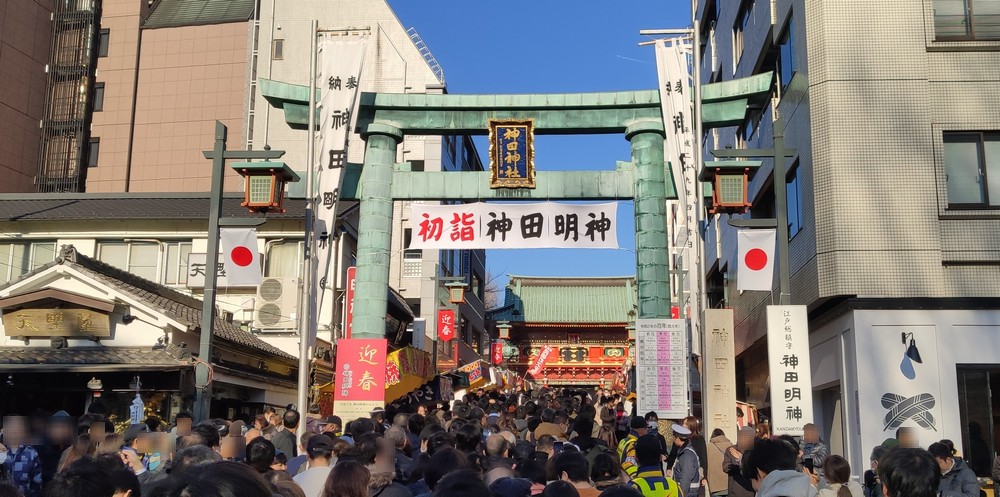 続いて近所だし・・・ということで、神田明神へ。こちらの方が鳥居の外の行列は短い感じで、流れも早い感じで、すぐに済むかと思いきや・・・