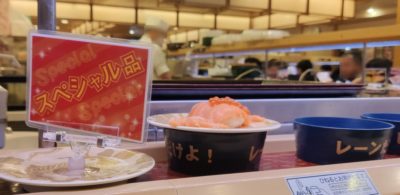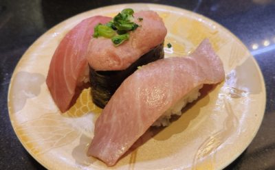唯一回っているところからゲットしたまぐろ3種。これはレーン限定スペシャルだったようです。久々にマグロ食べたわ。