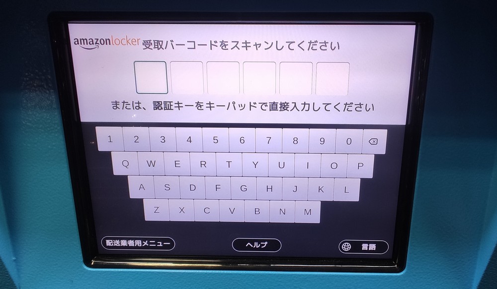 ロッカーに付いている画面をタッチすると、こんな画面が出ます。スマホ画面のQRコードを読ませるか、6桁のキーを入れるだけ。