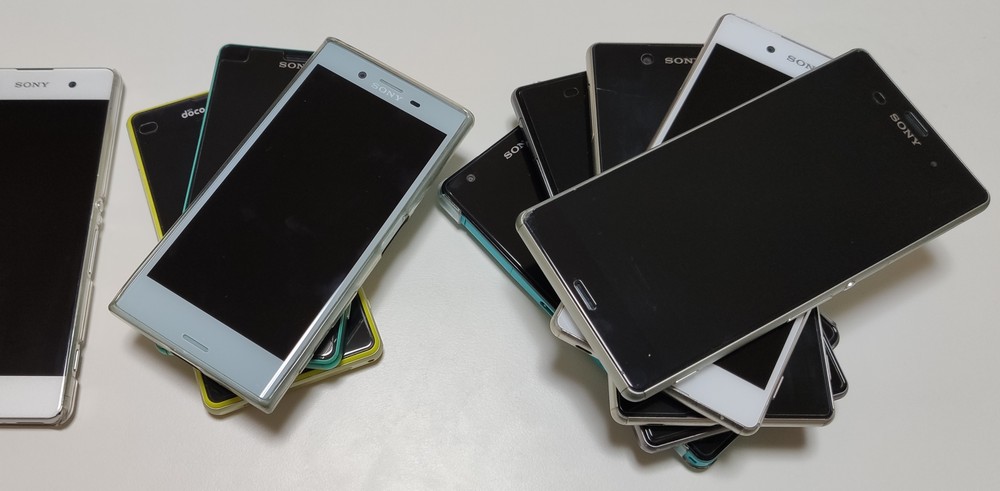 応募時に端末の IMEI 番号の入力が必要でして、対象端末は国内向けに販売された Z シリーズ以降・・・という感じ。我が家に対象機種があるかしら・・・と、みてみたら合計8機も出てきた(爆)。左側で見切れている XA などの海外端末が多い我が家は、対象外の方が多い。
