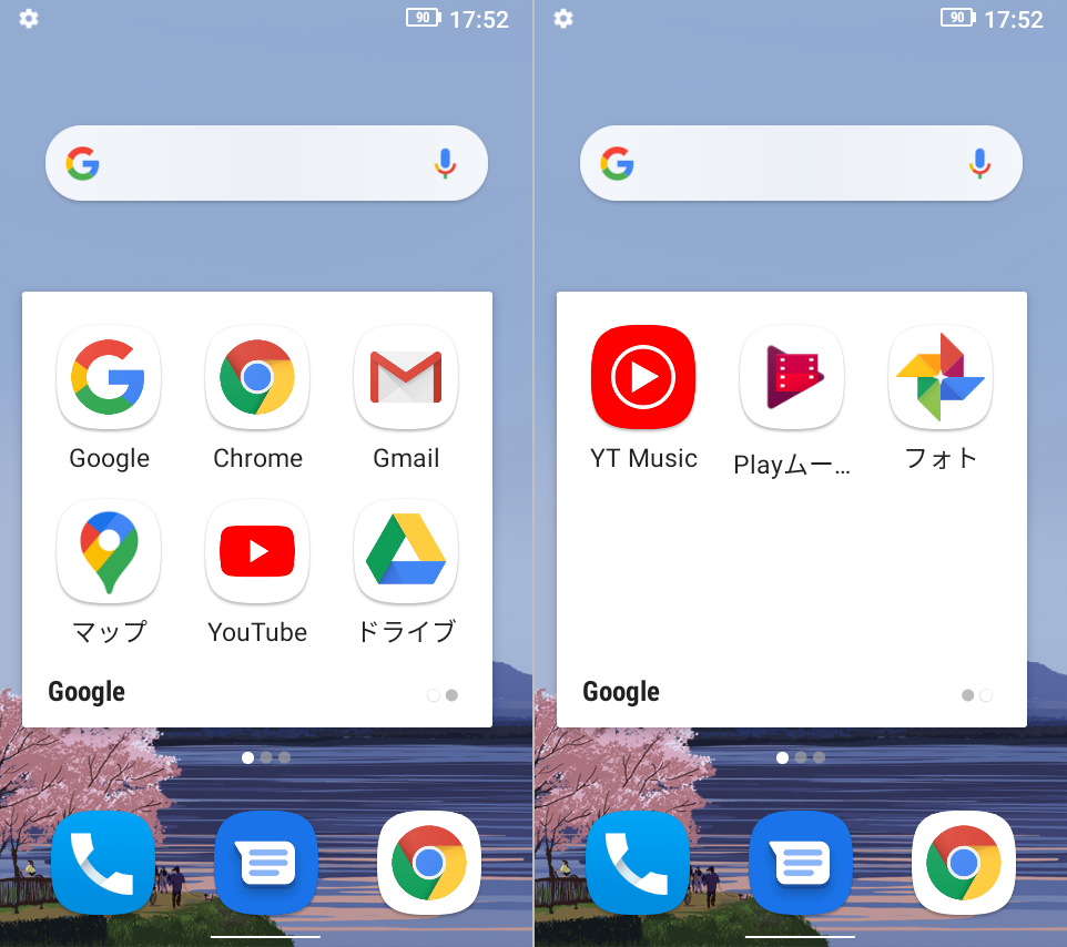 Google 関連だけグループ化されています。Google 関連は割と普通。Google Play Music がなくて YT Music だけになっているので、新しいコンフィグですね。