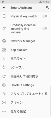 Jelly 2 用に用意されている特殊な設定としては、Smart Assistant があります。若干日本語化されていない部分が残っていたり、設定名だけでは機能がなんだか不明な部分もありますな。