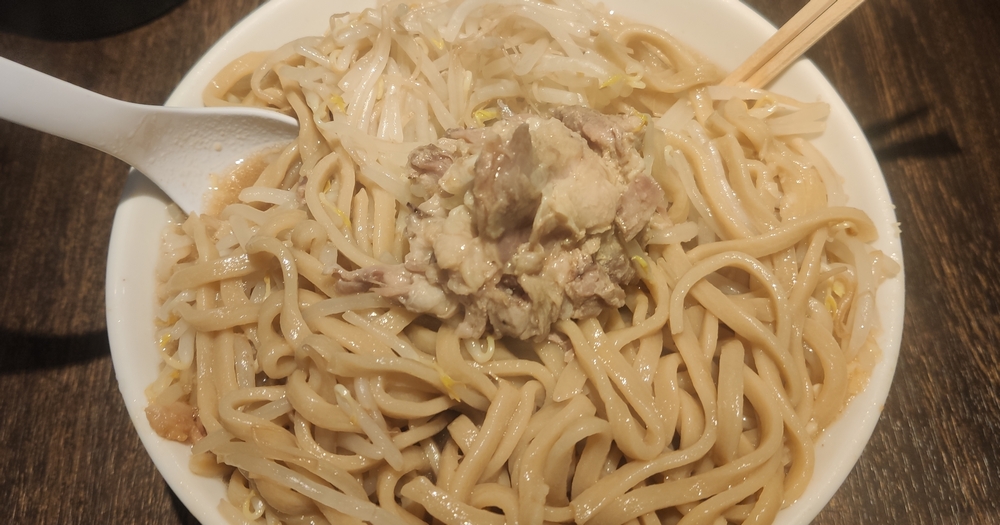 前回気になっていた麺ですけど、今回は上手に茹でられていて、食感が気持ち悪いということはありませんでした。これならサッパリ目なスープと相まって、二郎よりもマイルドかつゴツ目な太麺という別ラーメンとして美味しく戴けますな。