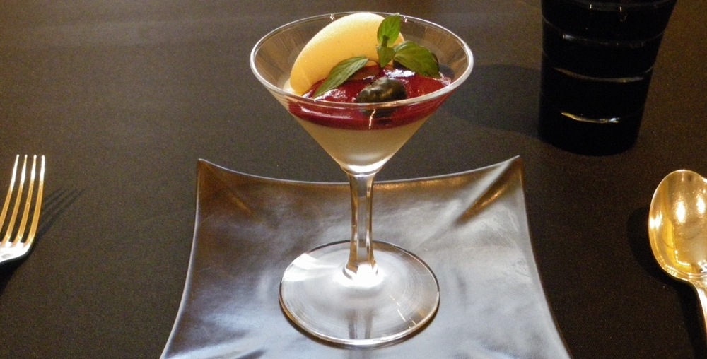 ここからが甘いものがちょっと苦手な管理人のお仕置きタイム(笑)。・・・甘党の方々には至福のひと時デザートタイム。第1弾はアイスクリームにブルーベリーとカシスのソース。これは管理人も美味しく頂けました♪