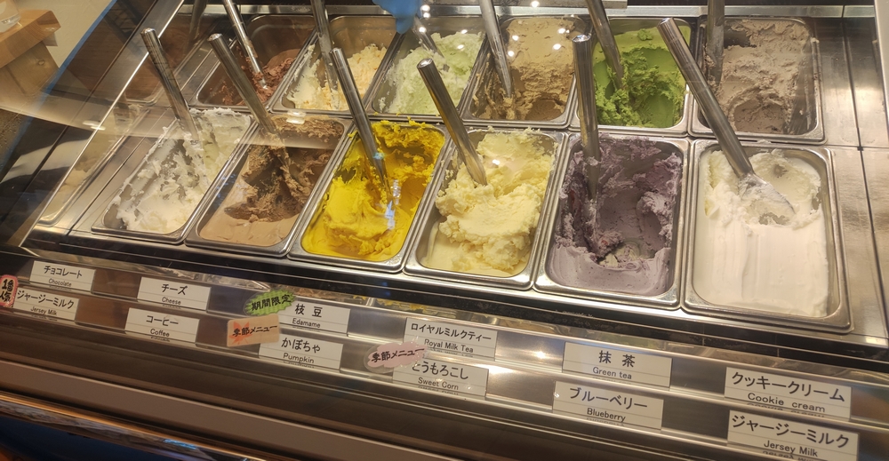 12種類のフレーバーから2種類をチョイス。おっと、よく見たらジャージーミルクは2か所にあるので11種類だ(笑)。
