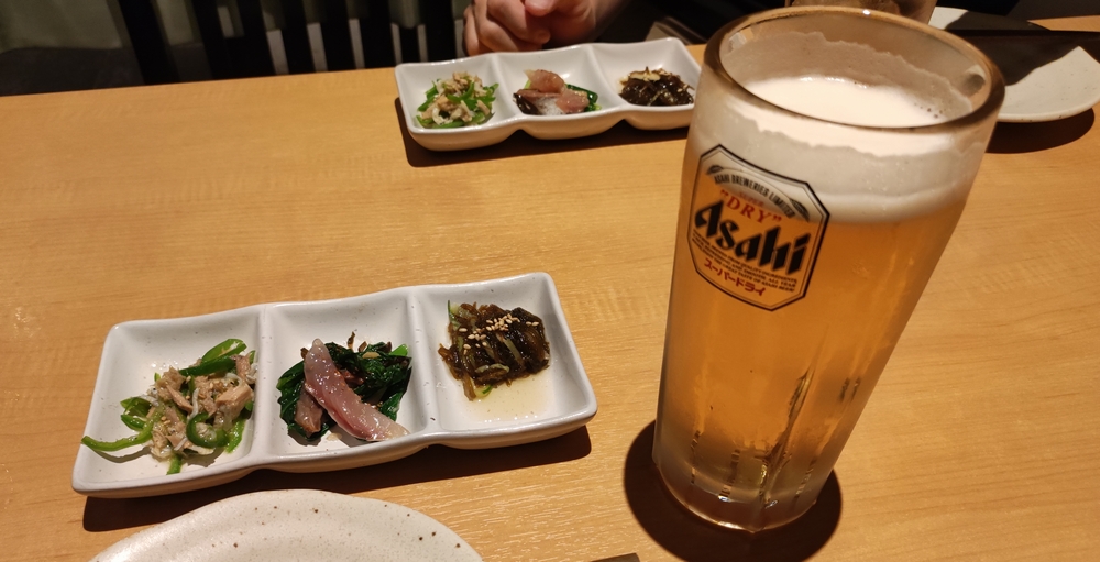 本日の運転は終了しているので、ビール戴いちゃいます。やはり居酒屋での生ビールはウマイっすね~。ちなみに、お通しが美味しかった。
