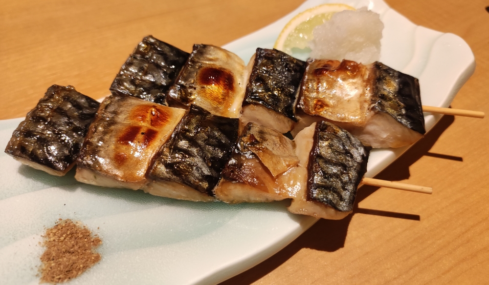八戸前沖サバの棒串。肉厚でジューシーな沖サバ。美味しいですな。