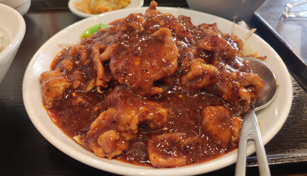 タップリ野菜炒めの上に豚肉と辛味成分もタップリでボリューム満点。野菜もガッツリ食べれるし、辛いモノ食べたい欲もシッカリと満たしてくれます。これで税込み650円ってのは、なかなかハイコスパなランチ。