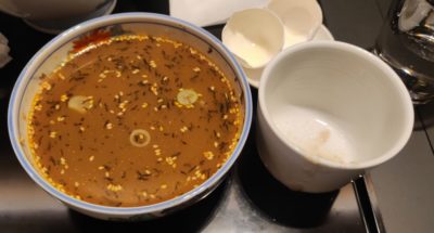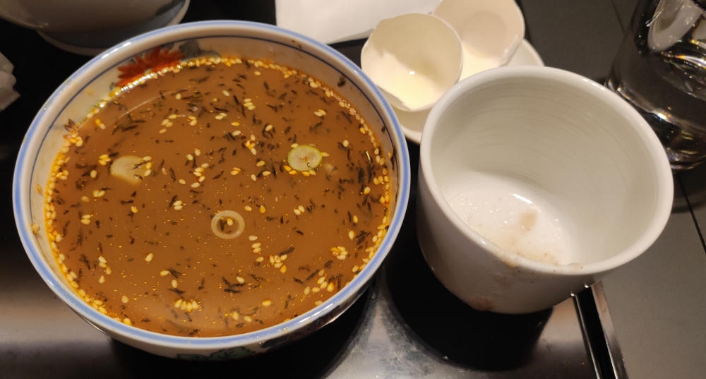 蕎麦湯は粉をお湯で溶く感じなモノが用意されていまして、余ったつけ汁に投入。こうすると、結構出汁の風味も強かったことが改めて感じられます。