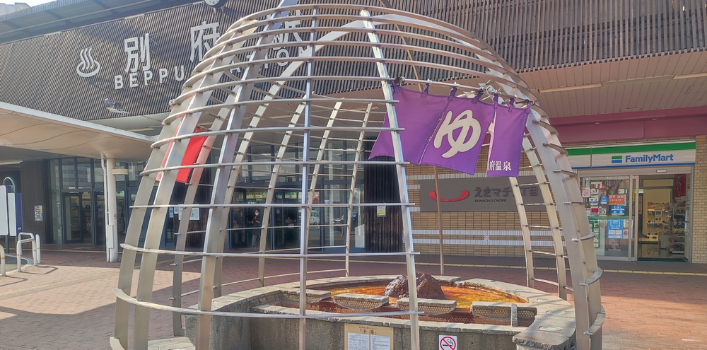 その奥には足湯ではなく手湯。温泉が有名な別府まで来たんですけど、今回は温泉には浸からず。