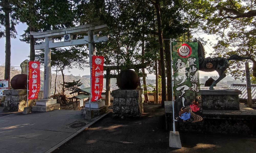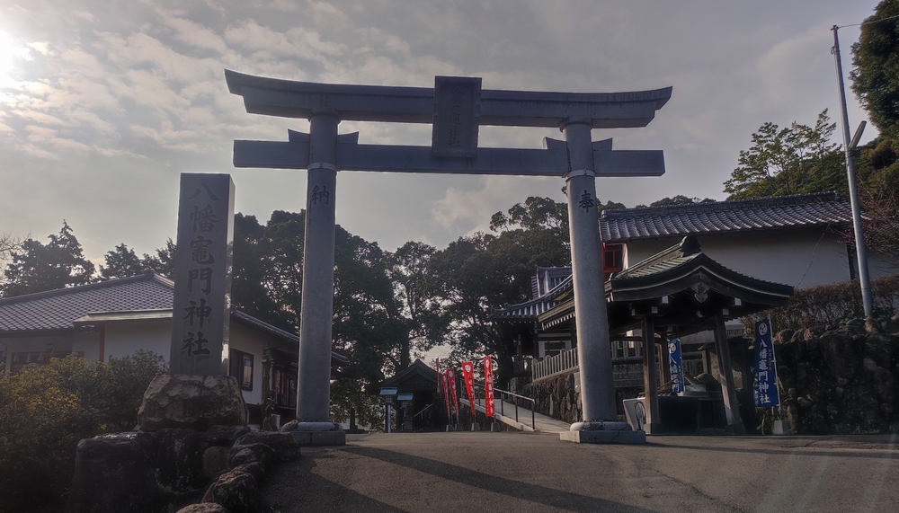 八幡竈門神社にやってきました。平日の午前中ということもあってか、空いてました。ココ、鬼滅の刃の聖地的な神社だそうな。