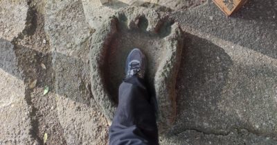 鬼が忘れた石草履。足を入れたら力が湧きだすらしい。なんか湧いてきた気がする??