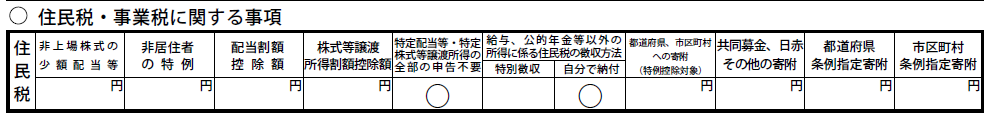 今年の申請分から、住民税に関して仕様変更がありまして・・・所得税の申請時に「特定配当等・特定株式等譲渡所得の全部の申告不要」にチェックを入れると、昨年までは別途申告していた市民税・県民税の申告が不要になるかもしれないといいます。