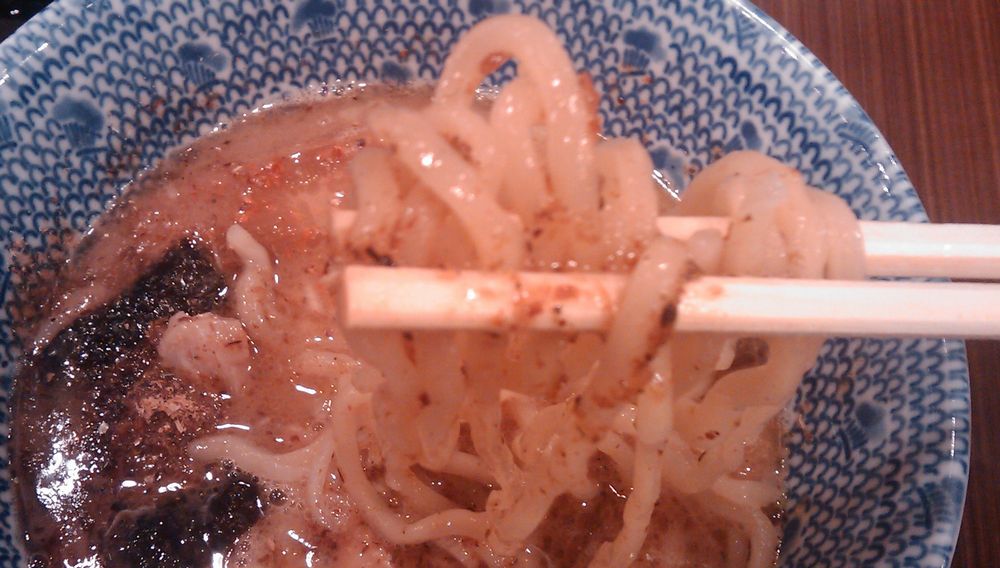 魚介の粉末が口に残りますが、味もなかなか。麺はつけ麺としては結構美味しい部類のつるつる麺。歯ごたえがあってスープも絡むし美味しいです。最後に割りスープを頂きましたが、柚子の風味がサッパリしていてなかなかいけます♪