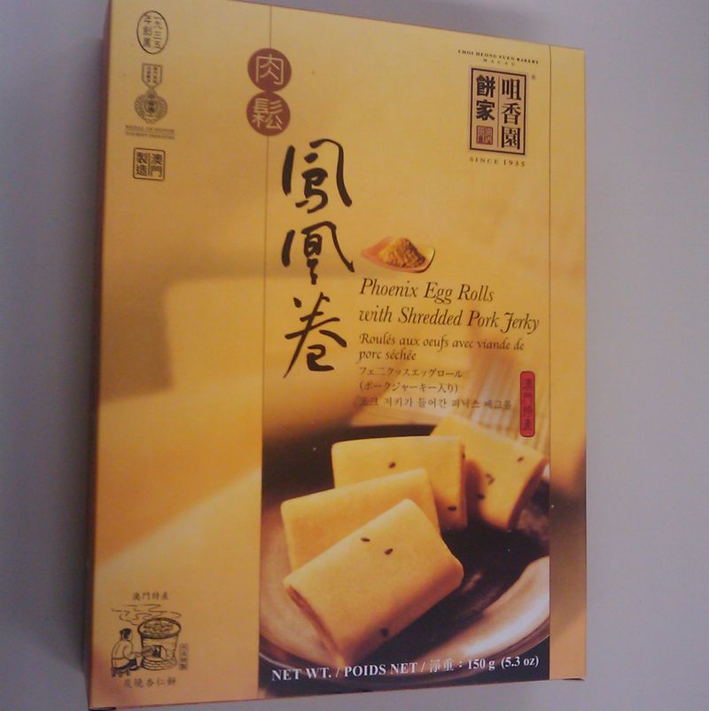 なんか意味不明なキーワードがちりばめられていますが、日本語でもちょっぴり解説がありますね・・・エッグロールなのにポークジャーキー入り・・・甘いお菓子にジャーキーとか、ビーフじゃないとか突っ込みどころ満載です♪