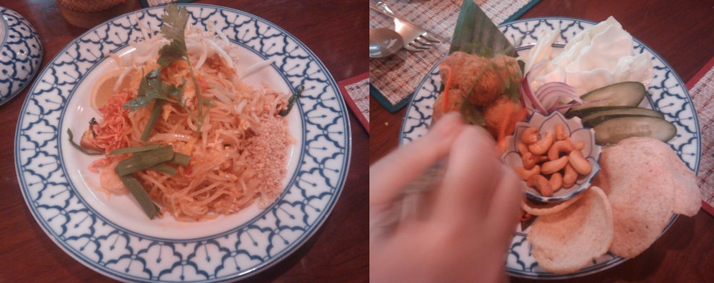 まだまだ序の口「パット ミー」タイ風焼きビーフン。そしてT沢先生の手が乱入している「ケオ トーダ ブリック ゲーン」タイ風ピリ辛ライスコロッケ。・・・もう Twitter に名称入れるのが面倒になったので、メニューを全部撮影。blog 執筆時に頑張ってマッチングしています(笑)。