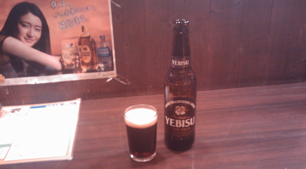 なんかレトロな雰囲気なお店でしたが、電車の都合もあり、各自一杯ずつで解散となりました。私は懲りずにビール・・・エビスの黒のミニボトルでした。