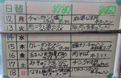 メニューは割と豊富ですが、暖簾に「タンメン・餃子」って書かれていたので・・・