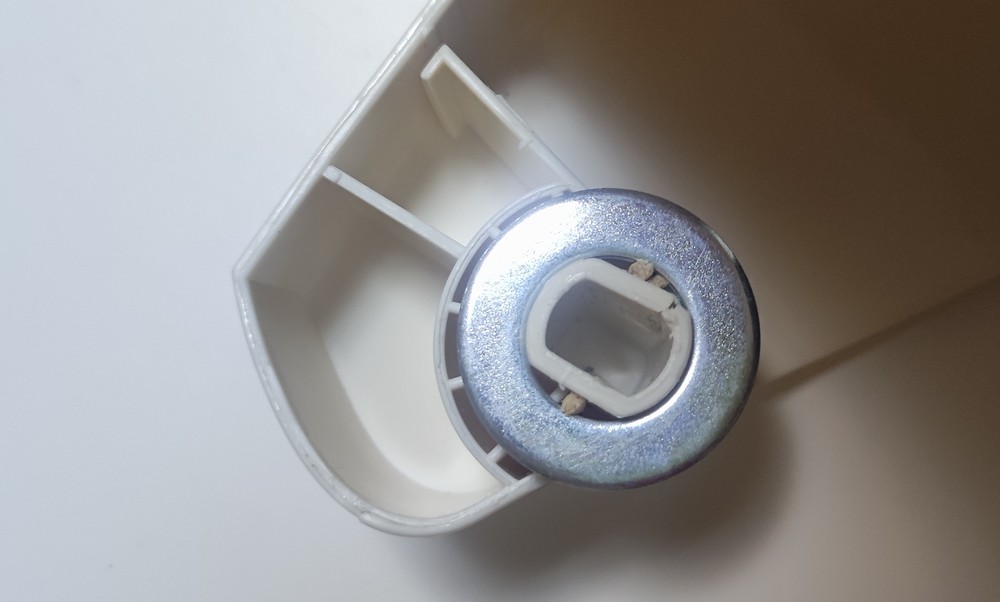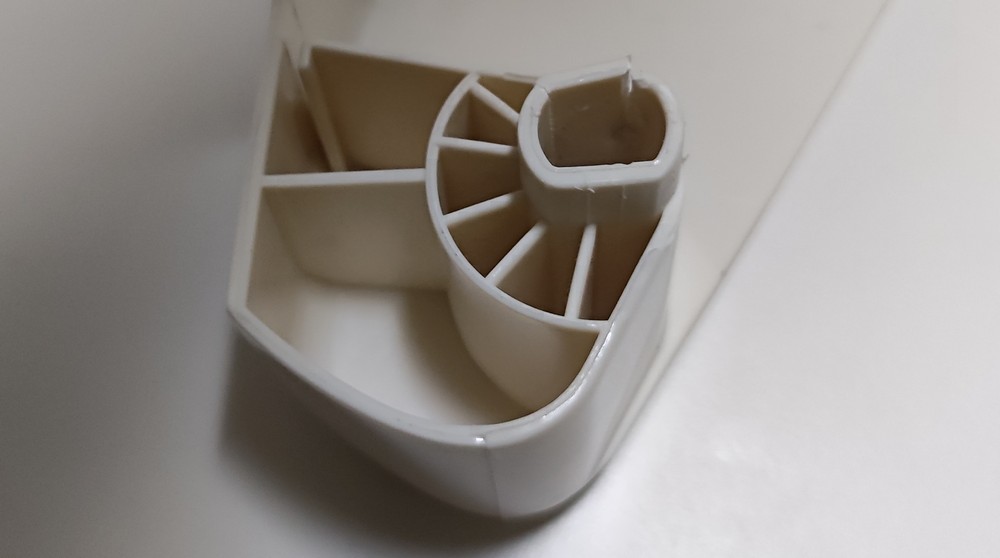 右側の軸が破損していました。FAQ の「3」に該当。フタの交換をせよとのことです。ググってみると、同様の事象が多数出ています。ちょっと多すぎるくらい事例があってびっくり(笑)。人によっては無償交換だったり、補強パーツをもらったりといった対処をしてもらったという事例もあるようです。