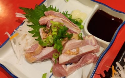 この日はささみ刺しが売り切れとのこと。鶏もも刺しと鶏むね刺しはいただきました♪